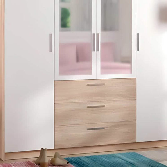 دولاب ام دي اف بلون أبيض مع خشبي