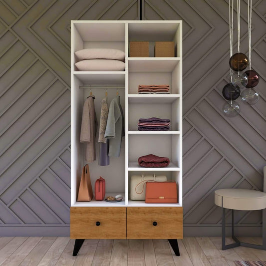دولاب خشب بلونين أبيض وخشبي