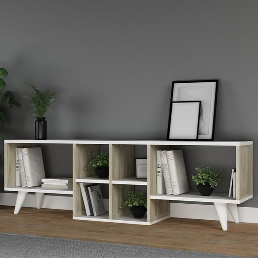 طاولة تلفاز ام دي اف أبيض مع خشبي
