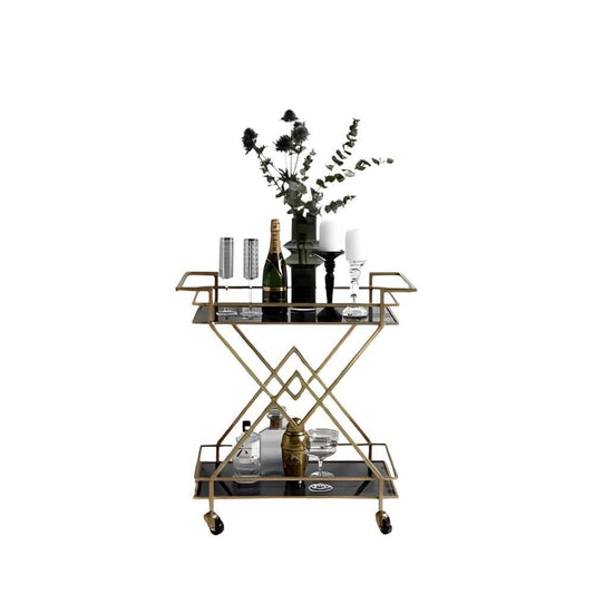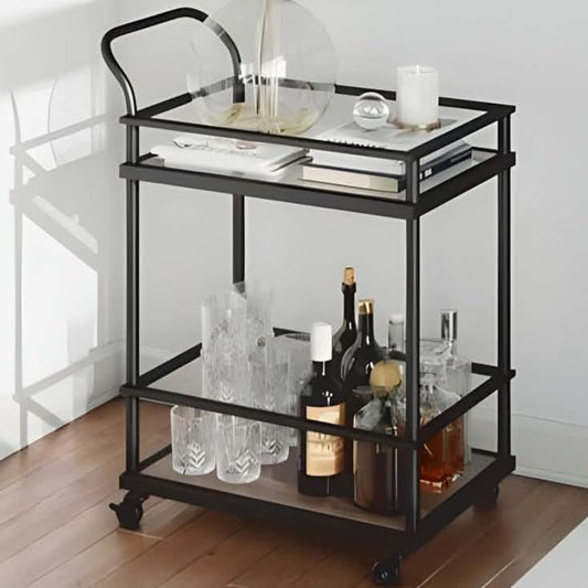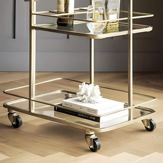طاولة تقديم من خامات المعدن والزجاج مزودة بعجلات