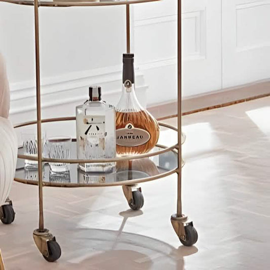 طاولة تقديم معدن باللون الذهبي مزودة بعجلات