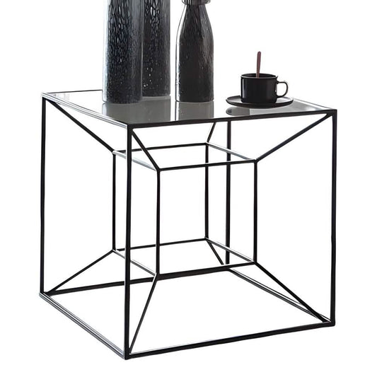 طاولة جانبية مصممة من الحديد والزجاج الشفاف