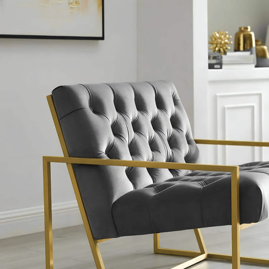كرسي معدن و قماش مصمم باللون الأسود مع الرمادي