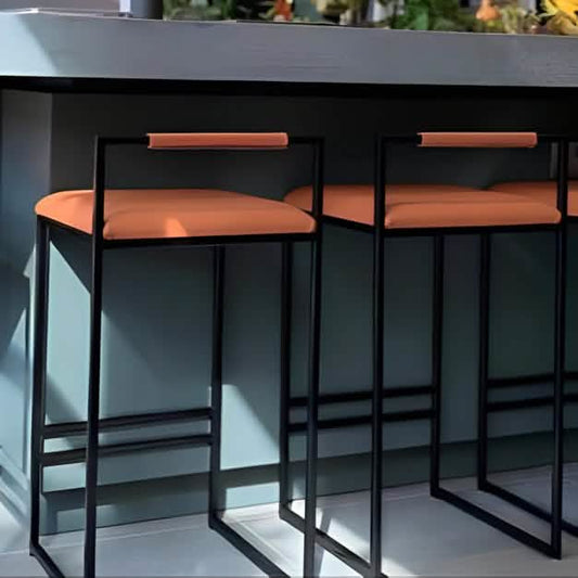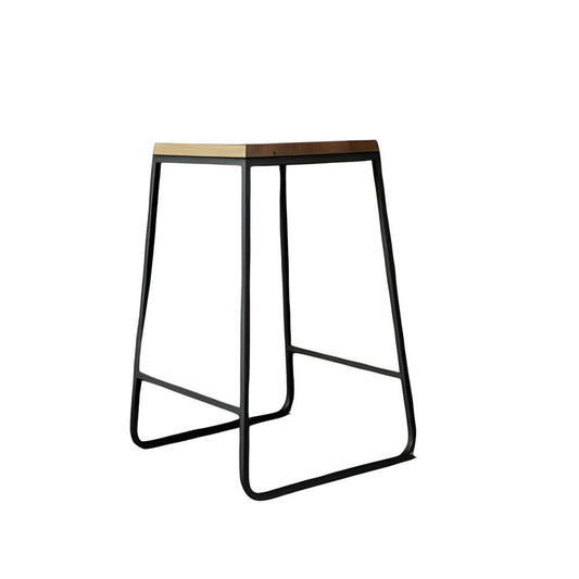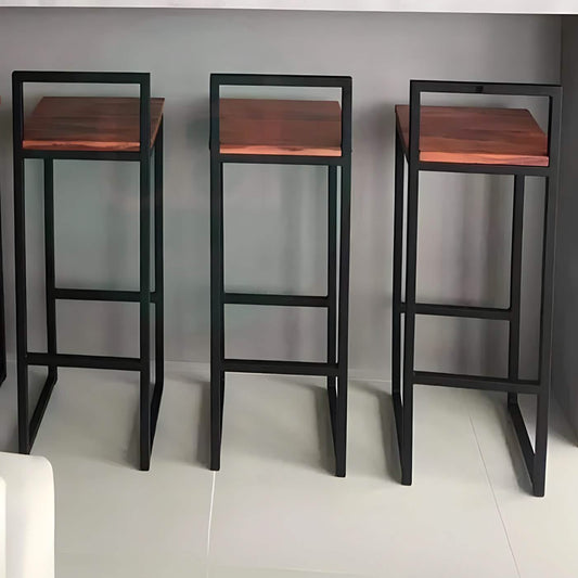 كرسي بار معدن و ام دي اف أسود وخشبي اللون
