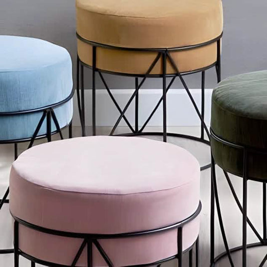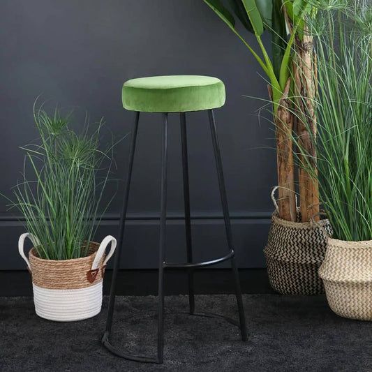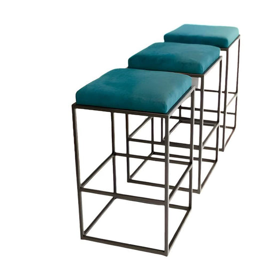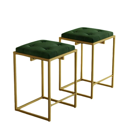 كرسي بار معدن و قماش ذهبي مع أخضر غامق