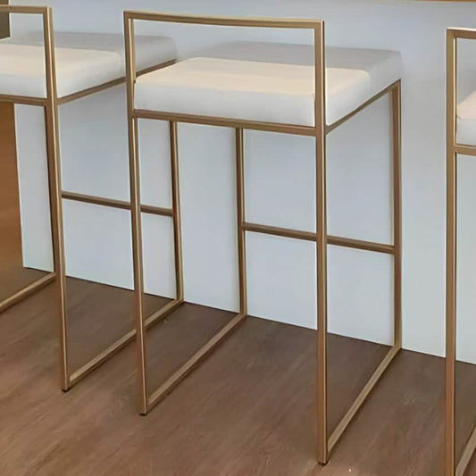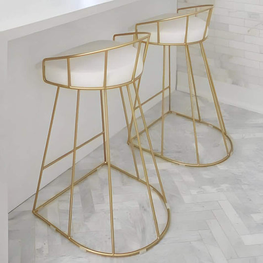 كرسي بار معدن و جلد ذهبي مع أبيض