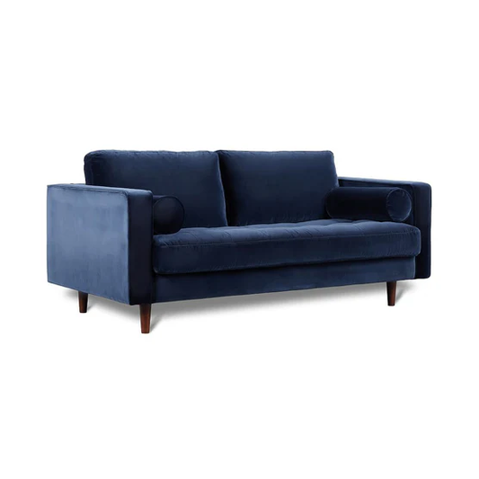 كنبة من قماش القطيفة والخشب الطبيعي