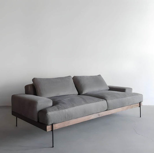 كنبة باللون الرمادي من الخشب الطبيعي