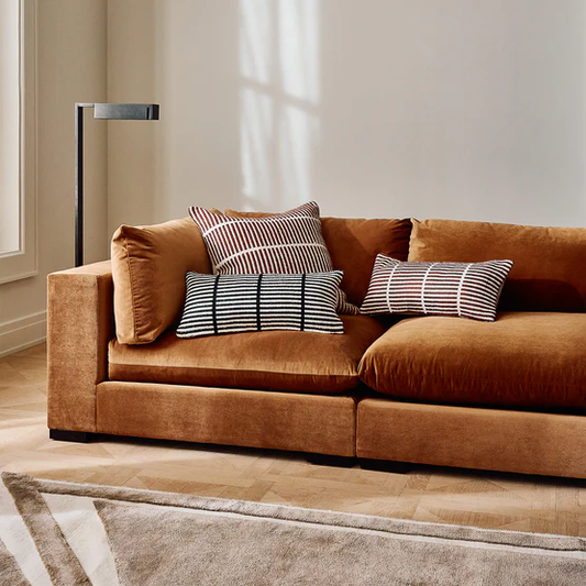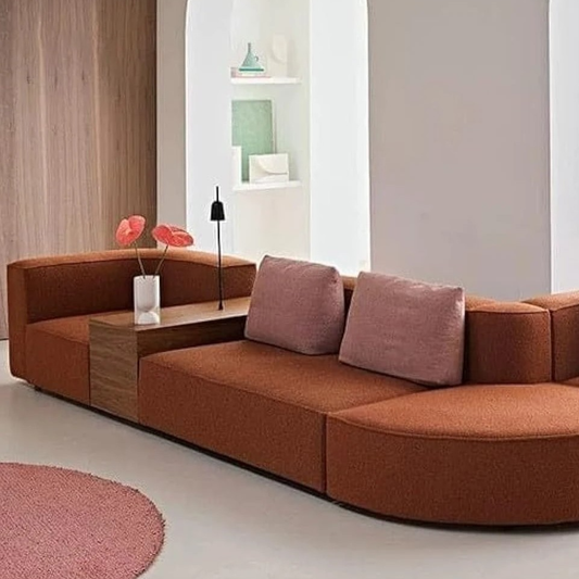 كنبة مودرن من الخشب الطبيعي مع قماش القطيفة