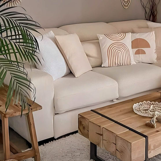 كنبة بيضاء مصنوعة من خشب طبيعي