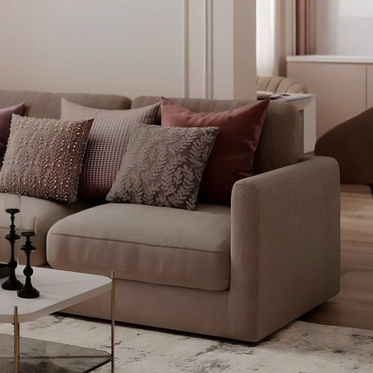 ركنة خشبية بلون رمادي فاتح من قماش القطيفة