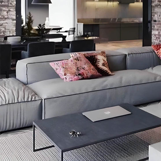 كنبة رمادي داكن مصممة من خشب طبيعي