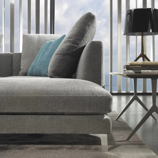 كنبة رمادية مصنوعة من الخشب الطبيعي