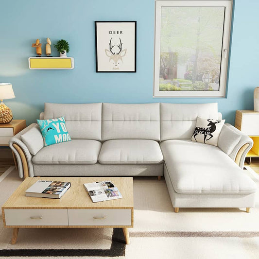 ركنة مصنعة من القطيفة وخشب الزان باللون الأبيض