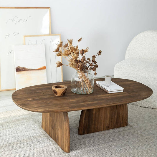 طاولة قهوة ام دي اف أبيض مع خشبي