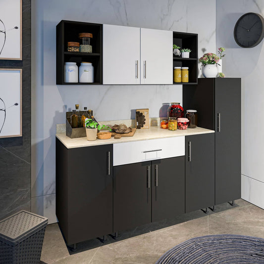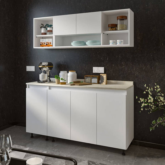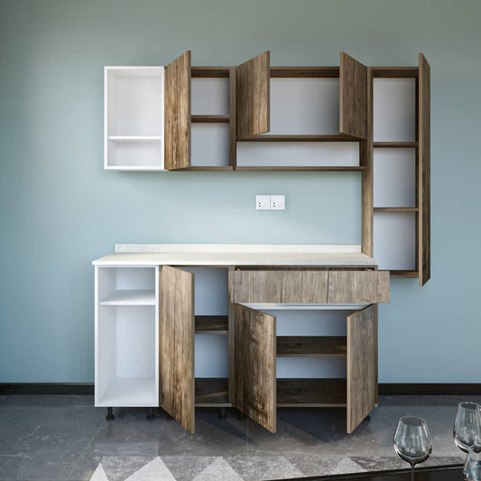 مطبخ خشبي بوحدة تخزين علوية متعدد الألوان