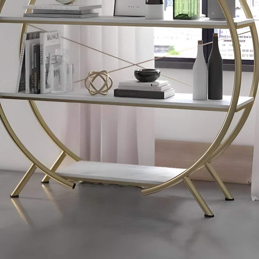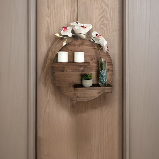 وحدة أرفف خشبية مستديرة بتنظيم راقٍ