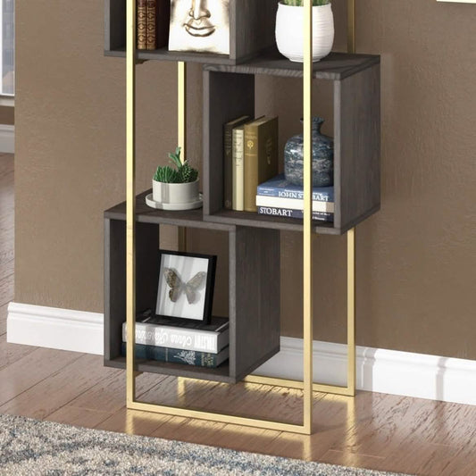 وحدة أرفف معدن باللونين الرمادي والذهبي