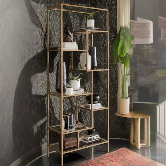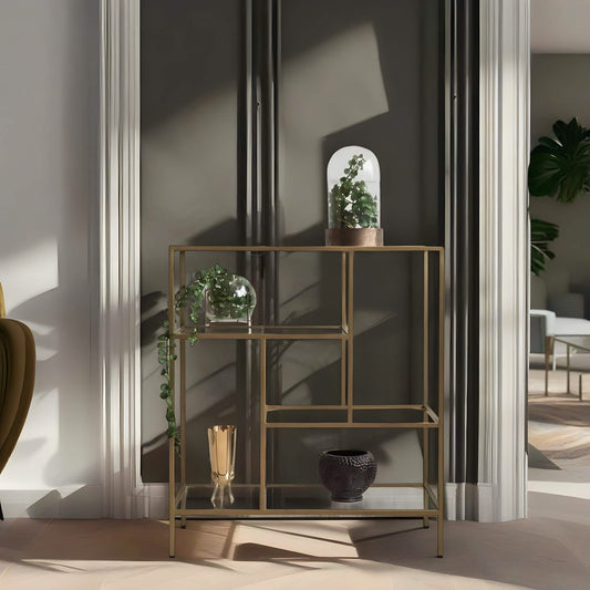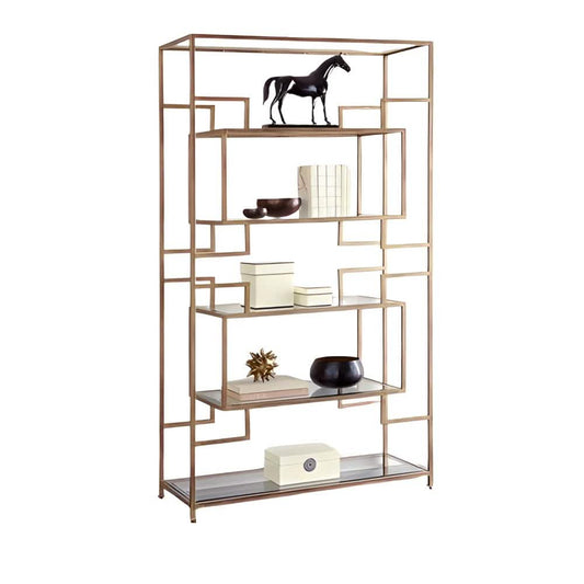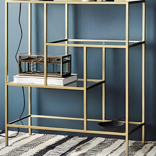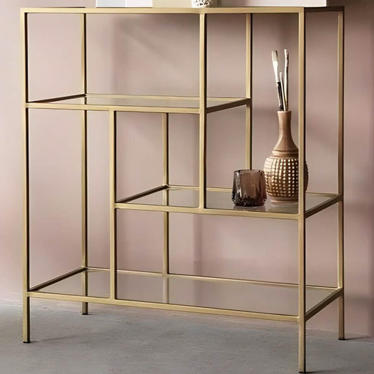 وحدة أرفف معدن و زجاج ذهبية اللون