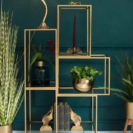 وحدة أرفف مميزة باللون الذهبي من المعدن