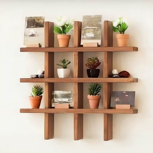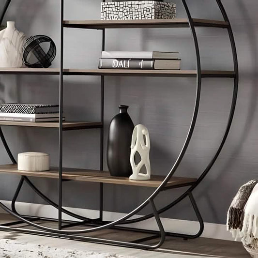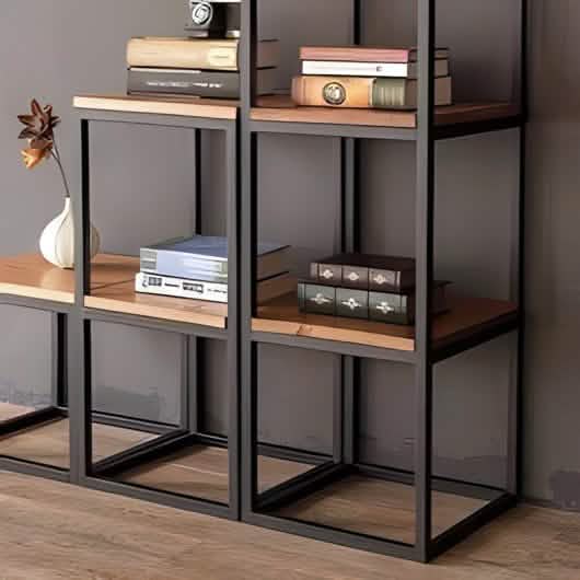 وحدة أرفف معدن مودرن باللون الأسود مع الخشبي