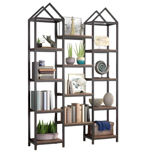 وحدة أرفف معدن مميزة بلون أسود مع خشبي