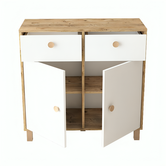 وحدة تخزين باللون الخشبي مع الأبيض ام دي اف