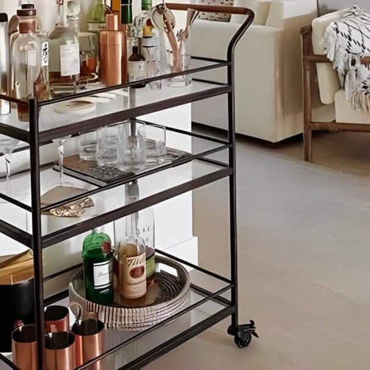 طاولة تقديم معدن مع زجاج
