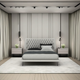 سرير رمادي فاتح مصمم من الخشب الطبيعي