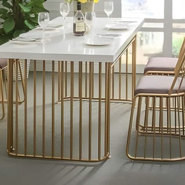 طاولة مع 4 كراسي مودرن بلون ذهبي مع أبيض