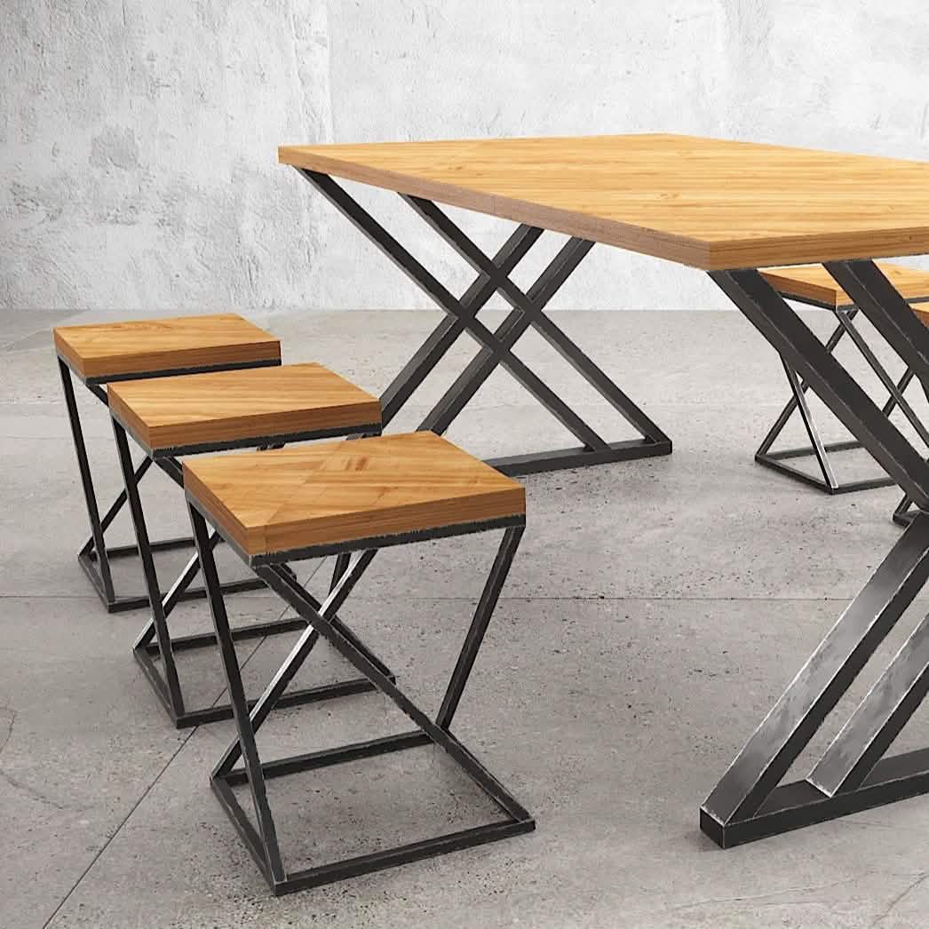طاولة مع 6 كراسي بلون أسود مع خشبي