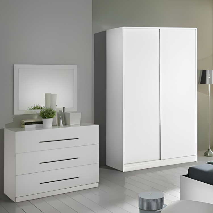 غرفة نوم شبابي، مصنوعة من خشب ام دي اف ميلامين، تجربة فريدة من نوعها تجمع بين الراحة والفخامة، سرير مريح بتصميم أنيق مع دولاب و كومود،و تسريحة ذات ثلاثة أدراج ومرآة تضيفان جاذبية فائقة. تأتيكم هذه الغرفة بتصميم فاخر يتناغم مع أي ديكور داخلي، وتعكس رونقًا لا مثيل له.
