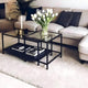 طاولة قهوة حديد وزجاج وخشب ام دي اف