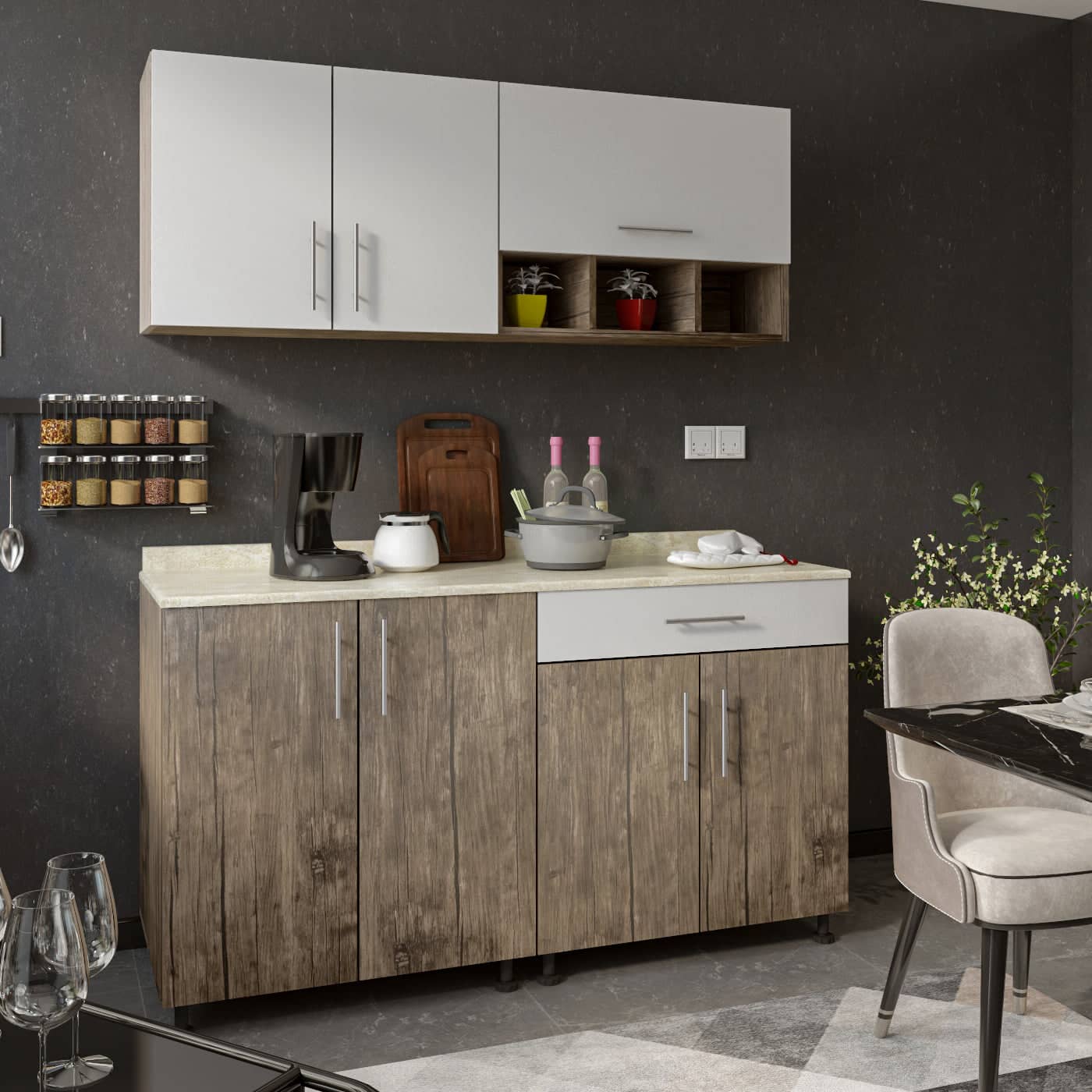 وحدة مطبخ خشبي ام دي اف وميلامين