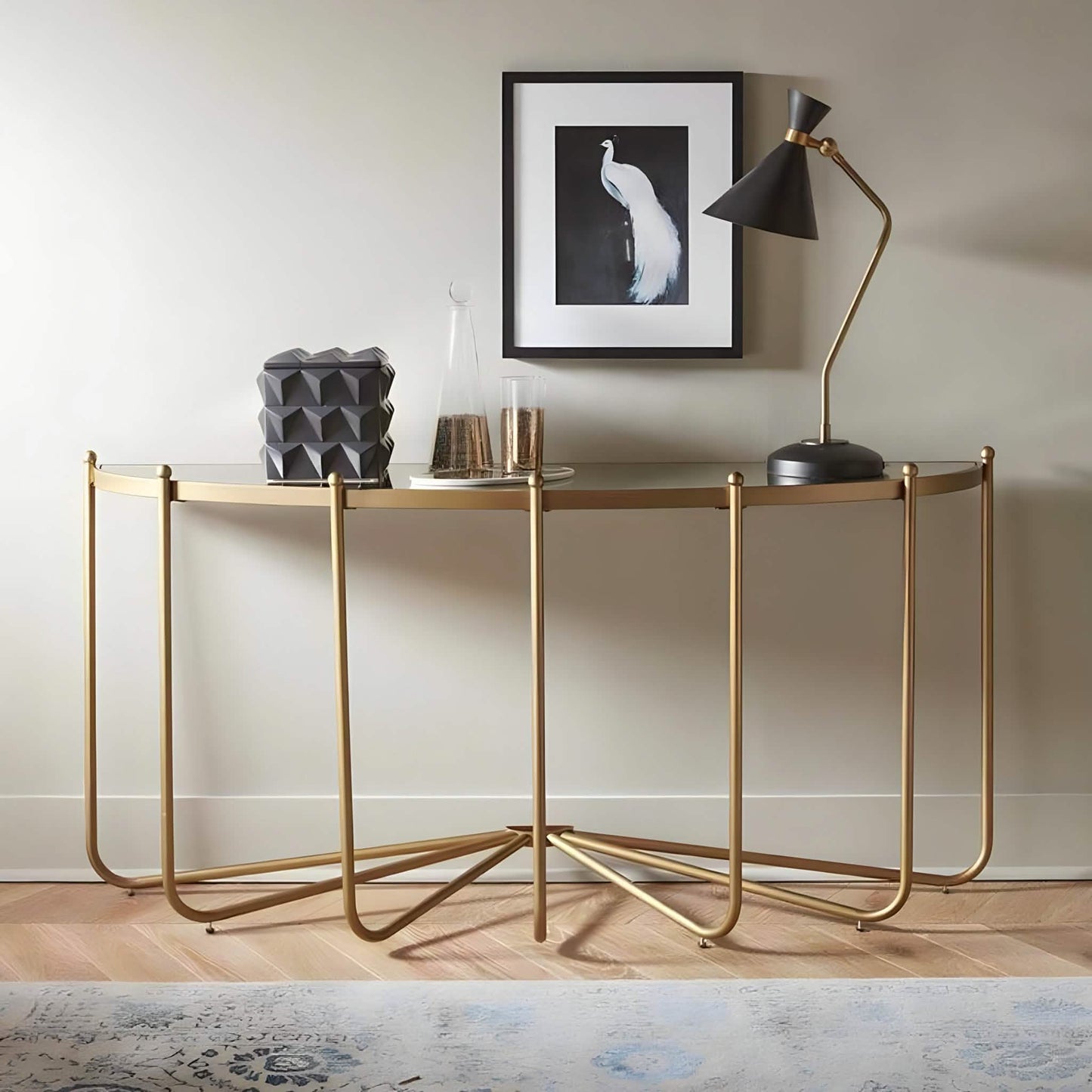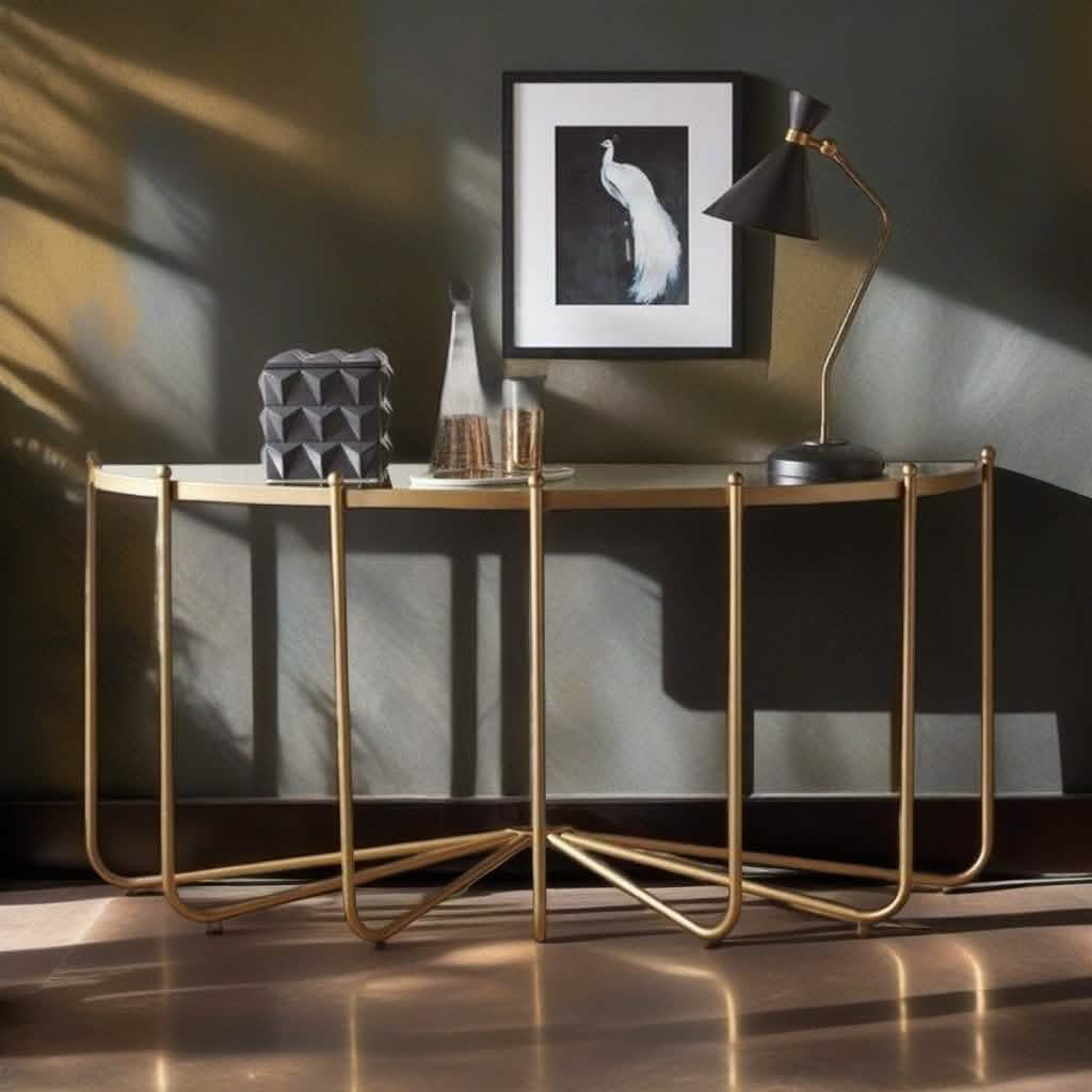 كونسول معدن بسطح زجاج