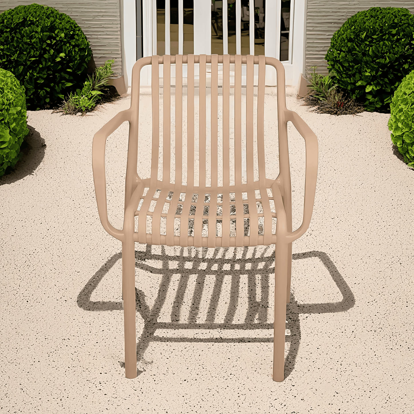 يوفر أكبر قدر من الراحة من خلال مسند الذراعين ويصمم بأبعاد فسيحة لكل من المقاعد ومساند الذراعين لتوفير دعم جيد الخامة ذات محتوى زيتي طبيعي عالي يساعد في الحماية من العوامل الجوية والرياح والجفاف وتغير الشكل.