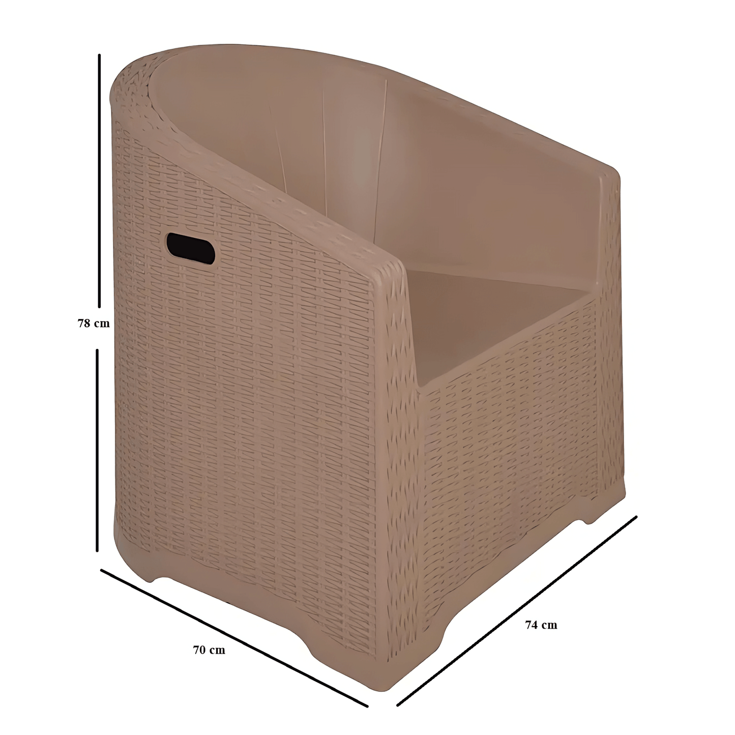 وفر أكبر قدر من الراحة من خلال مسند الذراعين ويصمم بأبعاد فسيحة لكل من المقاعد ومساند الذراعين لتوفير دعم جيد الخامة ذات محتوى زيتي طبيعي عالي يساعد في الحماية من العوامل الجوية والرياح والجفاف وتغير الشكل