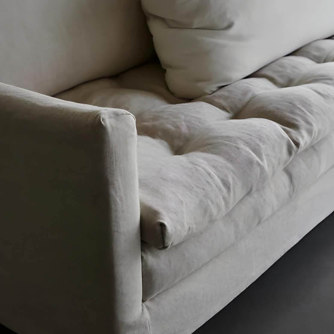 كنبة خشبية بقماش كتان